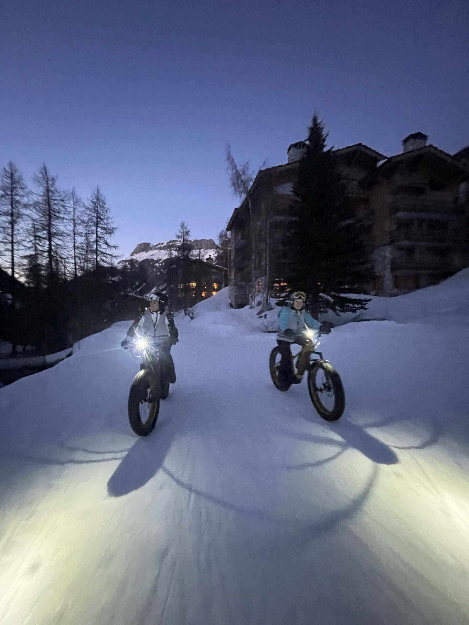 Cette activité est accessible à tout le monde : Les VTT vélos électriques à pneus larges Fatbikes offrent une stabilité exceptionnelle et des sensations inédites sur neige damée et les sentiers.